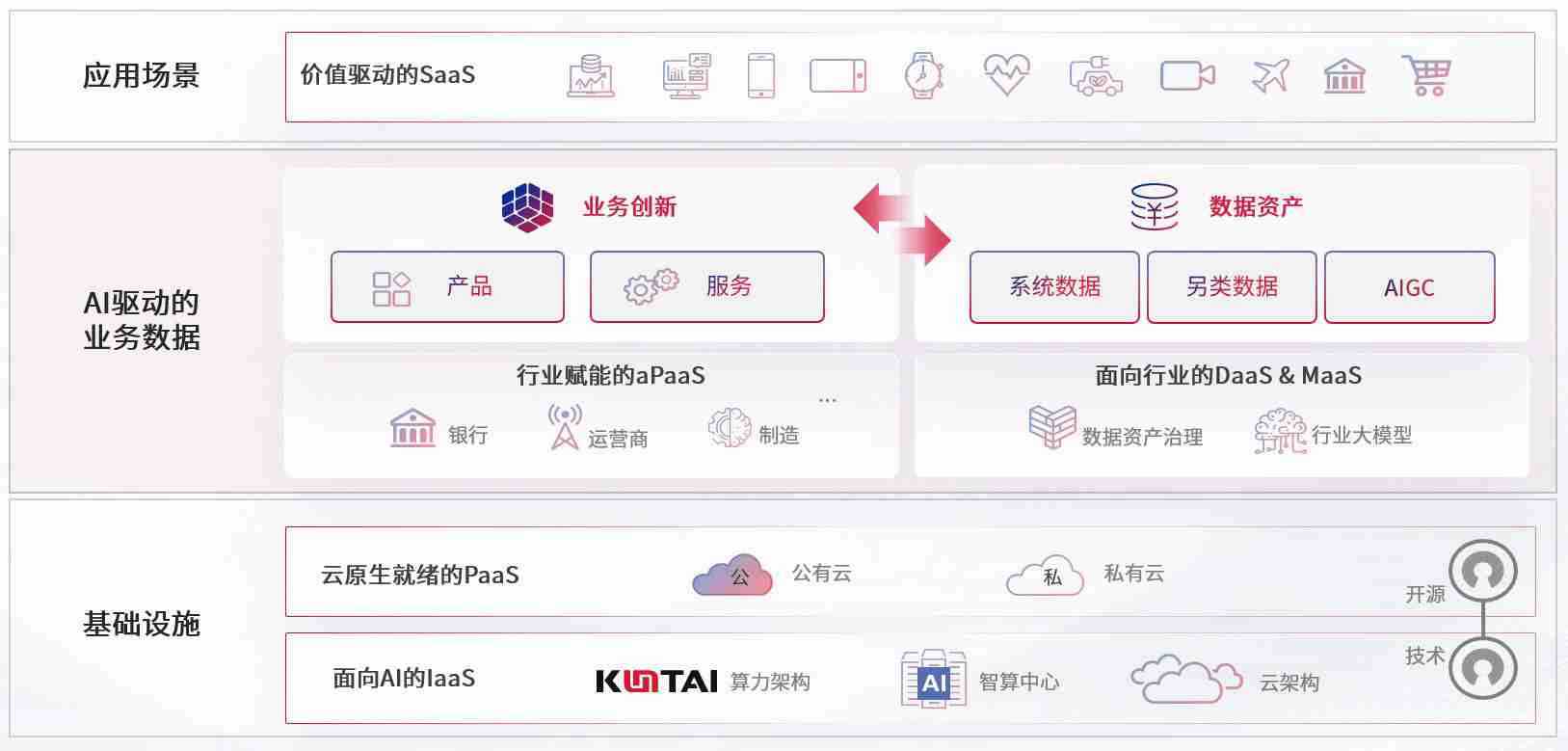 数字时代,,,,围绕企业数字化转型的关键要素,,,,彩神vll数码开创性的提出数云融合战略和技术体系框架,,,着力在云原生、、、、数字原生、、、、AI原生和信创产业上架构产品和服务能力,,,为处在不同数字化转型阶段的快消零售、、、汽车、、、、金融、、医疗、、、、政企、、教育、、、运营商等行业客户提供泛在的敏捷IT能力和融合的数据驱动能力,,,,构建跨界融合创新的数字业务场景和新业务模式,,,助力企业级客户建立面向未来的核心能力和竞争优势,,,全面推动社会的数字化、、智能化转型升级。。。。